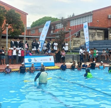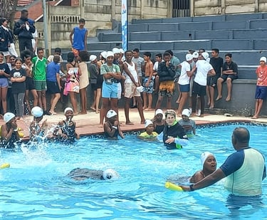 The highlight of the day came when learners got to put their new skills into action, jumping into the pool to practise what they’d learned. Laughter, cheering, and teamwork filled the air as students participated enthusiastically in water games and challenges. Prizes added to the excitement, while facilitators praised the learners for their curiosity, cooperation, and positive spirit throughout the session.